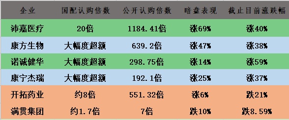 截止目前,综合港股生物医药板块新股,国配满额、超购的新股在公开发售、二级市场的往往能取得较好的表现。如沛嘉医疗国配申购151人,认购倍数超过20倍,打新时认购倍数约1184.41倍,上市至今涨幅20%;康方生物国配认购超大幅度超额,公开超购倍数约639.2倍,上市至今涨幅达到38%;诺诚健华国配认购超大幅度超额,公开认购倍数约298.75倍,至今涨幅59%;康宁杰瑞国配超购,公开超购倍数约192.1倍,涨幅超过37%。