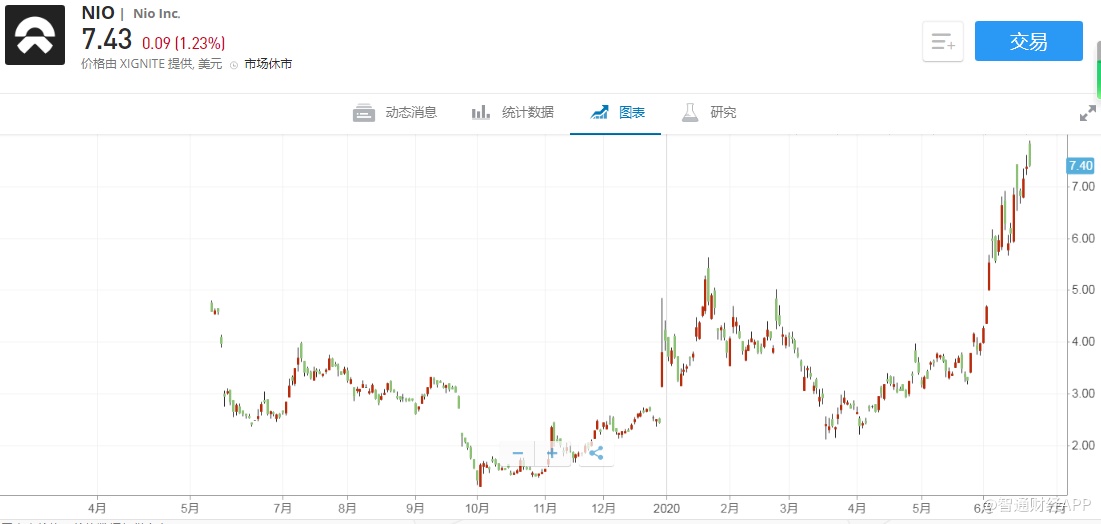 智通财经APP获悉,蔚来(NIO.US)美股盘前涨3.63%,报7.70美元。今年迄今(截至6月22日收盘)已累涨逾80%。