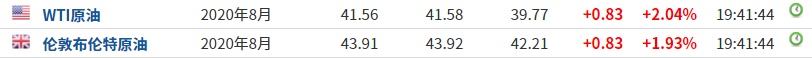 截至发稿,WTI原油涨2.04%,报41.56美元/桶。布伦特原油涨1.93%,报43.91美元/桶。