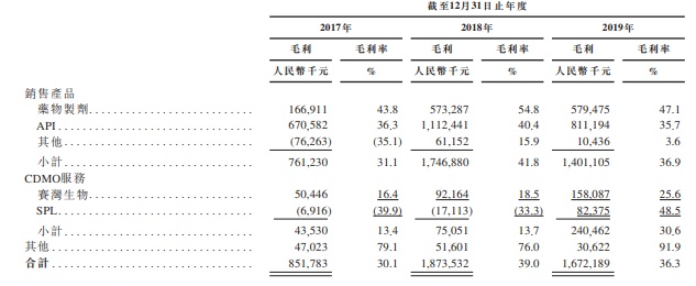该企业的毛利从2017年的人民币8.52亿元增加 119.9%至2018年的人民币18.74亿元,主要是由于药物制剂的毛利增加,而这主要归因于该企业的依诺肝素钠注射液价格上涨及欧盟市场的需求增加令产量增加所带来的规模经济,以及API产品毛利增加(主要由于肝素钠API价格上涨及该企业对主要客户的肝素钠API销量增加引致的规模经济)。该企业的毛利从2018年的人民币18.74亿元减少10.7%至2019年的人民币16.72亿元,主要归因于该企业的API产品毛利减少,而这是由于原材料成本的大幅增加。