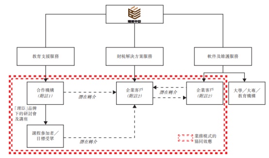 公司的合作机构位于中国12个省份或直辖市及23个城市,为教育服务提供者,主要从事为企业家、高级行政人员以及财税行政人员等举办各类讲座、演讲及课程。