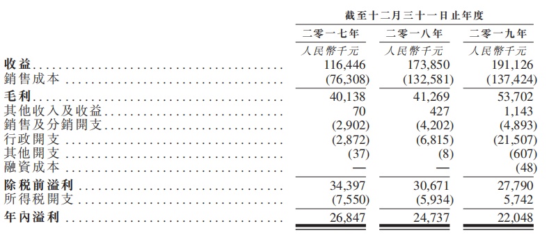 公司的纯利由2017年的人民币2684.7万元减少至2018年的人民币2473.7万元,减幅为7.8%。纯利由2018年的人民币2473.7万元减少10.9%至2019年的人民币2204.8万元,主要是由于计入行政开支项下的一次性影响。