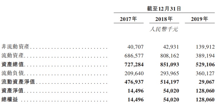 流动资产净值由截至2017年12月31日的人民币4.77亿元微增至截至2018年12月31日的人民币5.14亿元,其后减少至截至2019年12月31日的人民币2906.7万元,主要由于应收关联公司款项大幅减少及就收购江苏苏铁应付代价的相关其他应付款项及应计费用增加。
