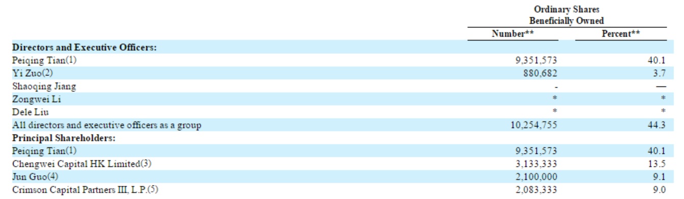 其中,董事长田培庆持股40.1%,CEO左怡持股3.7%。高管及董事总持股比例为44.3%。