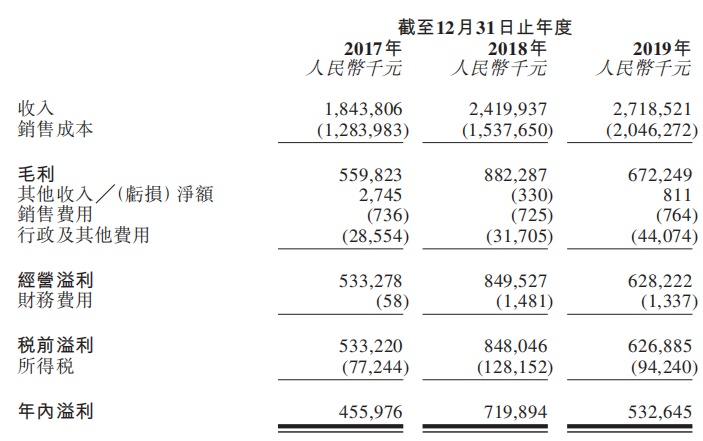 公司的毛利由2017年的人民币5.60亿元增加57.6%至2018年的人民币8.82亿元,后又减少23.8%至2019年的人民币6.72亿元。