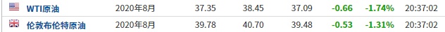 截至发稿,WTI原油跌1.74%,报37.35美元/桶。布伦特原油跌1.31%,报39.78美元/桶。