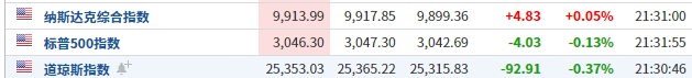 智通财经APP获悉,周四美股开盘,三大股指涨跌不一。道琼斯指数跌0.37%,标普500指数跌0.13%,纳斯达克指数涨0.05%。