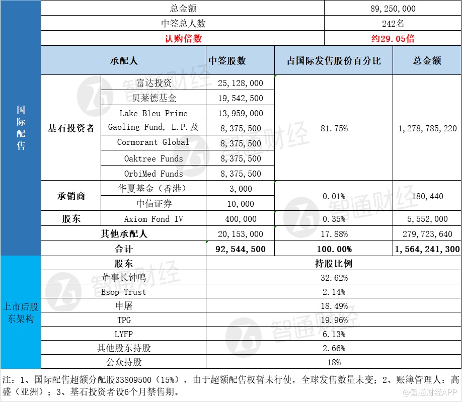 国际配售申购人数未披露,但获得超购倍数约29.05倍。