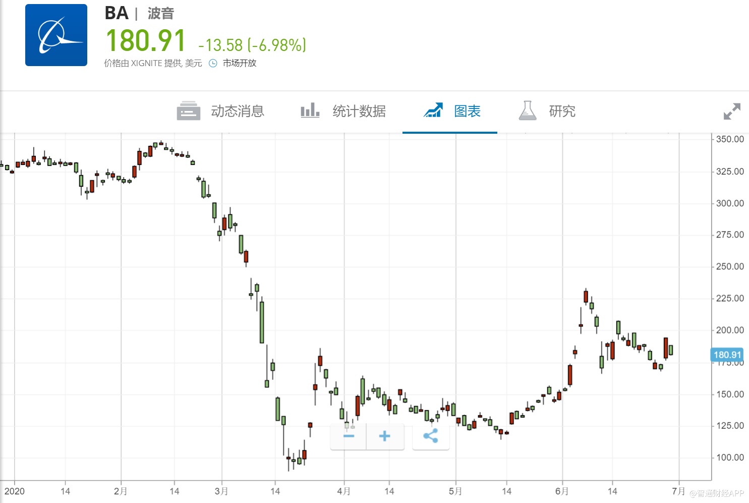 智通财经APP获悉,今日(6月30日)美股盘初,波音(BA.US)股价走低,截至北京时间22:20,该股跌6.98%,报180.91美元。