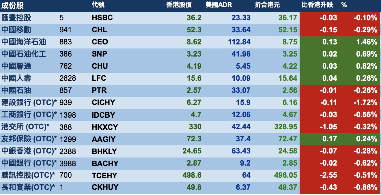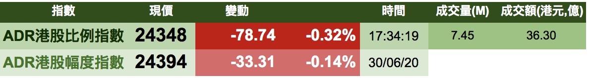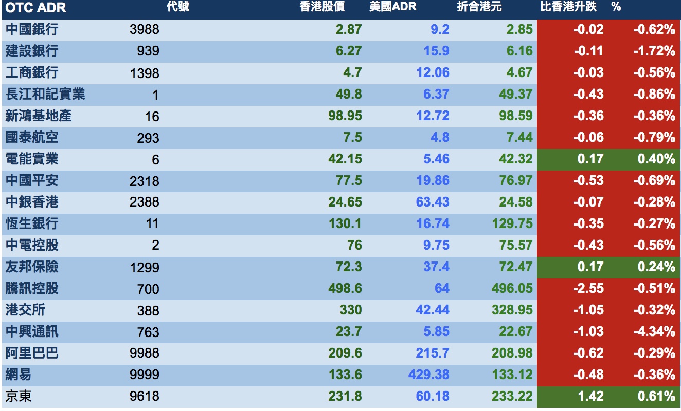 智通财经APP获悉,美股上涨,但港股ADR指数全日偏软,按比例计算,收报24348点,跌79点。