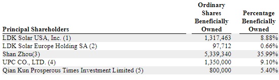 LDK Solar Europe Holding SA持有阳光动力0.66%的股权。