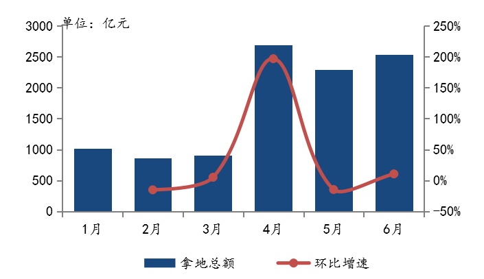 图:2020年1-6月50家代表房企每月拿地总额