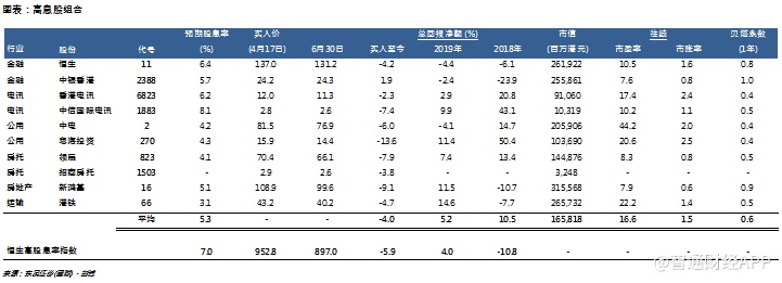 高息股组合4月17日至今总回报净额为-4%,领先指数1.9个百分点。截至6月30日,高息股组合总回报净额为-4%,同期恒生高息股指数为-5.9%,因此组合暂时领先1.9百分点。高息股表现疲弱,而且组合较多为业务集中本地的企业,过去两个多月包括股价及股息的总回报净额并不理想,但稍为优于指数表现。暂时表现最差的依次为粤海投资(00270)、新鸿基(00016)及领展(00823),总回报净额分别为-14%、-9%及-8%。