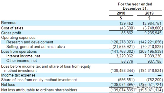 此外,除了License in授权产品引进,再鼎医药同样在做In-House自主研发项目。财报显示,2019年公司研发费用达到1.42亿美元,叠加当期公司的营销费用,当期公司费用端超过2亿美元,这也是导致公司大幅亏损的重要原因之一。