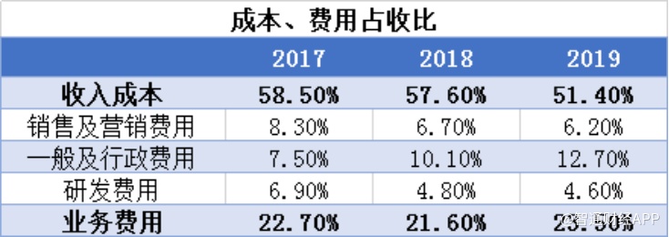 整体来看,除2019年收入增速约达2.02%较2018年26.90%增速有所放缓外,公司整体业绩表现稳健,毛利率、净利率均有所提升。在成本控制方面,员工薪酬服福利、折旧摊销为导致上涨的主要因素,目前整体控制良好。