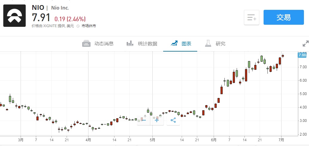 智通财经APP获悉,7月2日(周四)美股盘前,蔚来汽车(NIO.US)涨幅扩大,截至19:39,该股涨12.90%,报8.93美元。