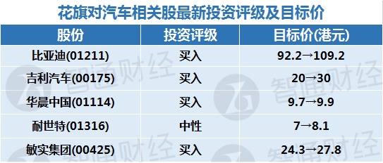 该行重申吉利汽车作为行业首选,上调其目标价至30港元,主要由于与Waymo的潜在新合作以及与沃尔沃汽车(Volvo)合并降低成本的协同效应。另外,上调比亚迪目标价至109.2港元,上调耐世特评级至“买入”评级,并调高敏实目标价至27.8港元。