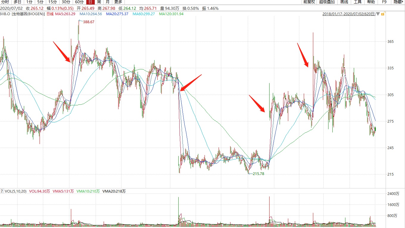对于biotech公司而言,走的是研发为主的估值驱动行情,其核心价值就在于核心管线的推进情况,因此研发里程碑事件对股价的边际影响都比较大,上下波动都比较剧烈,以上文生物基因为例,最终获批的时候,由于市场担忧其生产、商业化能力,反而是利好出尽高开低走,美股的大量biotech公司都是产品获批即是巅峰。