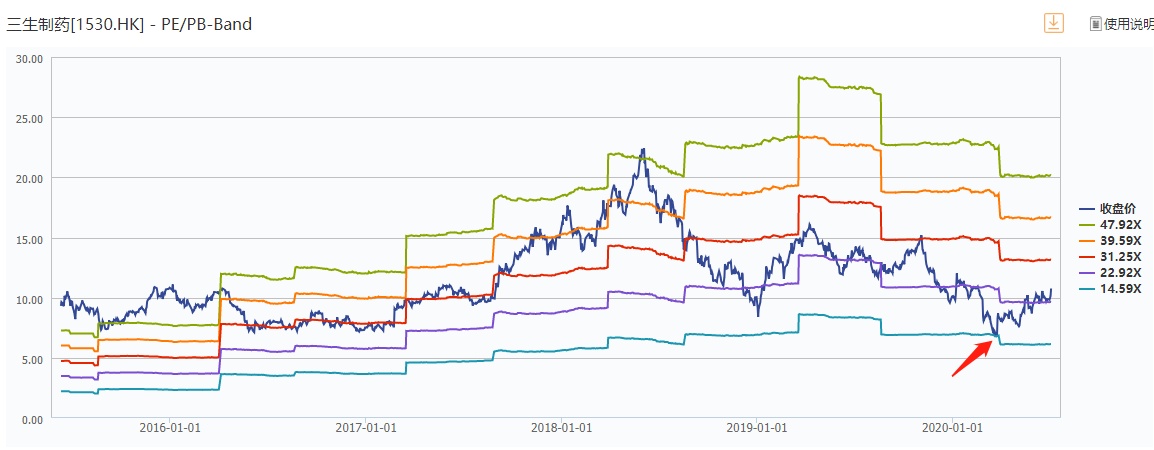 时间回到3月底,刚刚经过修美乐的医保谈判降价带来的益赛普悲观预期,叠加CFO的人事变动以及公共卫生事件引发的全球股市暴跌,三生的股价来到了上市以来的最低点,估值只有15倍,甚至比受带量采购冲击的仿制药企业的估值还低,极端行情下的极端杀估值。