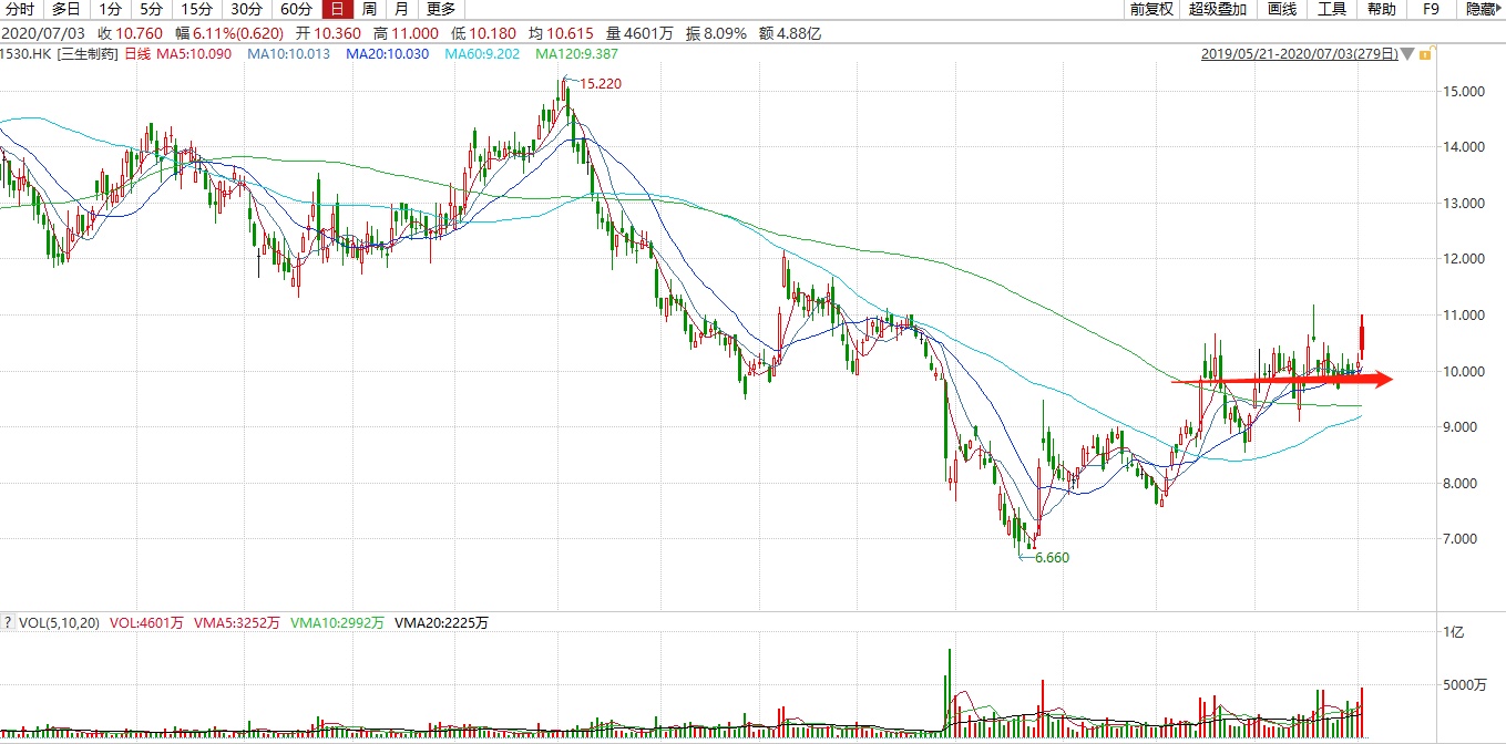 看不起,随后,4月27日,公司公告在4月15日已经委任前阿斯利康中国区运营首席财务官王飞为公司新的首席财务官;4月29日,执行董事兼董事会主席娄竞以7.99元/股场内增持184万股,涉资约1471.98万港元;6月19日,伊尼妥单抗获批上市;6月24日,三生国健科创板上市获得证监会批准;在短短的两个月内,持续的兑现重大里程碑事件,从团队建设、管线途径、资本运作上有都质的突破,但是市场反应平淡,随大市反弹后横盘。