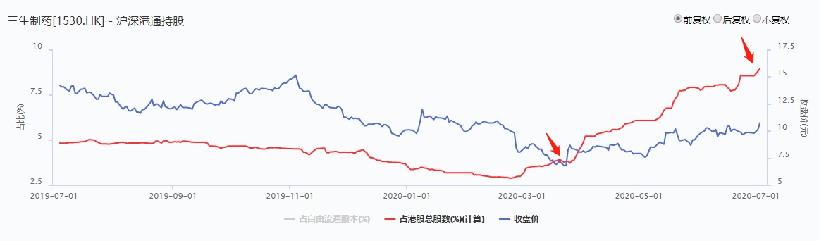 看不懂,虽然市场对三生的讨论热度依然不高,但是已经有先知先觉者在持续的涌入,从高瓴入股开始,港股通南下资金无视市场波动持续的流入,持股比例从低点的不到4%大幅提高到接近9%。