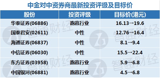 智通财经APP获悉,中金发表研究报告,列出对中资券商最新投资评级及目标价: