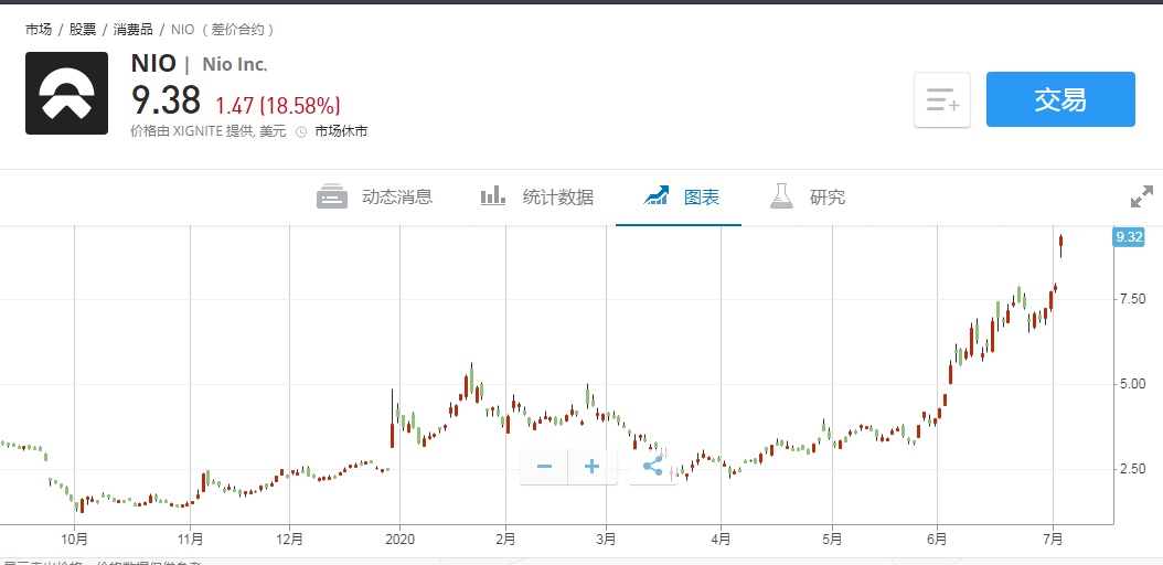 智通财经APP获悉,7月6日(周一)美股盘前,蔚来汽车(NIO.US)延续上涨趋势,截至16:12,该股涨16.63%,报10.94美元。据悉,蔚来上周四收涨18.58%。