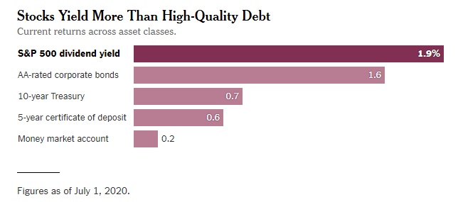 Rattner认为,目前美国市场股票价格最重要的推动力的是美联储注的入大量流动性,这股力量抵消了卫生事件对经济造成的负面影响。这将利率推至历史低点,将货币市场基金,债券和其他固定收益工具转变为低回报的投资。例如,标准普尔500支股票指数的股息收益率为1.9%,而10年期美国国债的股息收益率为0.7%。