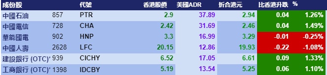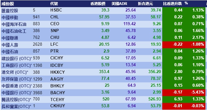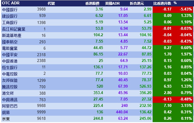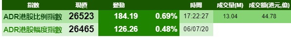 智通财经APP获悉,美股三大指数全线上涨,刺激港股ADR指数全日做好,按比例计算,收报26523点,升184.19点或0.69%。