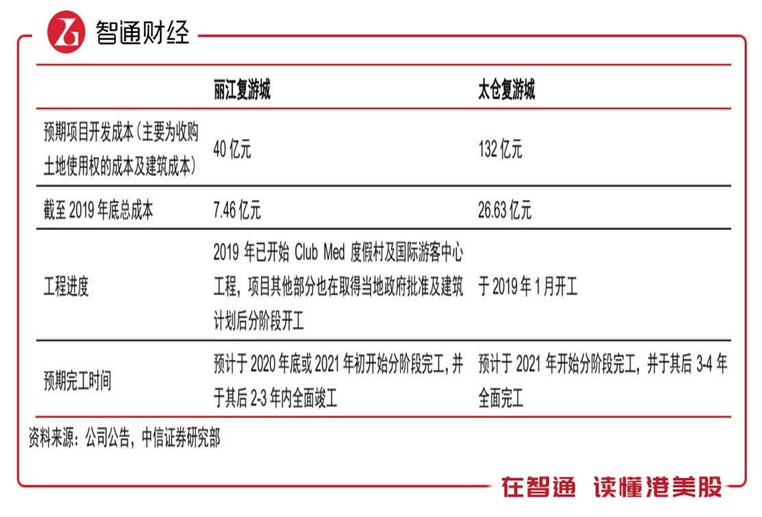 成功是可以复制的,丽江和太仓项目一定得到了很好的启发——2019年丽江Club Med度假村及国际游客中心开工建设,其他项目在取得相关批准后分阶段开工,而太仓项目也于2019年1月开工。丽江项目完工时间要早于太仓,预计2020年底及2021年初分阶段完工。