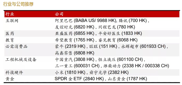 策略:招银国际继续偏好成长型股份。在招银国际预期的基本情况或最坏情况下(部分主要国家卫生事件出现温和至严重程度的反弹),招银国际继续看好受卫生事件及衰退影响较小的成长型股份,并憧憬5G带动复苏的科技硬件行业,同时建议投资黄金ETF及金矿股分散风险。
