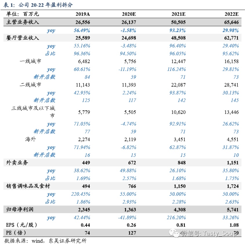 2)持续拓店,新店租约有望受益。本轮疫情冲击下,龙头餐饮企业拓店有望在店址选址、免租期、租金等方面持续受益,预计上半年新开店约150-200家,全年新开店数维持300+家预期;同时签约数保持较好态势。