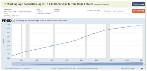 截至2020年6月12日,有2.06亿美国人被归类为“年龄在15-64岁之间的劳动人口”。此数字包括工人和个体经营者。此外,截至2020年6月,美国有3170万家小型企业,雇用了47.1%的劳动力。