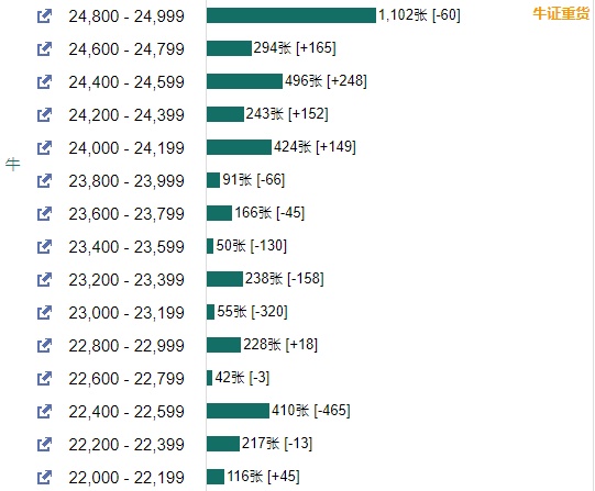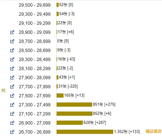 智通财经APP获悉,截至7月7日,恒指最新的牛熊街货比例51:49。摩根恒指牛熊证街货分布图中的数据显示,熊证街货重货区在26700-26899区间,该区间最新熊证数量为1352张,较上一交易日增加133张,最多新增区间在27300-27499,该区间最新熊证数量为851张,较上一交易日增加275张。牛证街货重货区在24800-24999区间,该区间最新牛证数量为1102张,较上一交易日减少60张,最多新增区间也在24400-24599区间,该区间最新牛证数量为496张,较上一交易日增加248张
