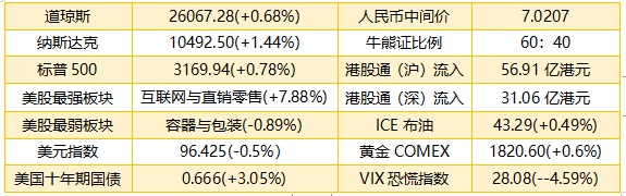 1、隔夜美股道指涨177.10点或0.68%,报26067.28点;纳指涨148.61点或1.44%,报10492.50点;标普500指数涨24.62点或0.78%,报3169.94点。港股ADR指数全日做好,按比例计算,收报26317点,升187.87点或0.71%。