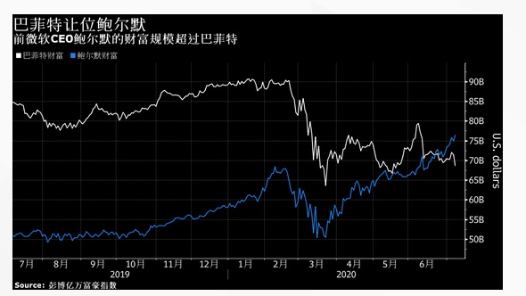 全球前七大富豪中,有六人来自科技领域,包括排名第一的杰夫·贝佐斯——今年他的净资产增加了680亿美元。还有鲍尔默,他的财富增加了180亿美元。在亿万富豪指数中,科技行业的财富表现最好,2020年增长了25%。