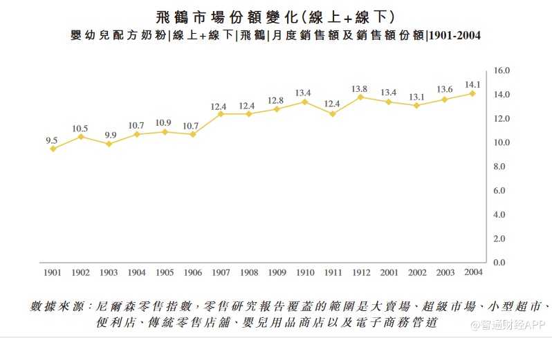 此外,根据广州尼尔森市场研究有限公司(非为公司委托)出具的中国婴幼儿配方奶粉市场2019年1月至2020年4月的报告(尼尔森报告),期间飞鹤品牌的市场份额变化如下图:
