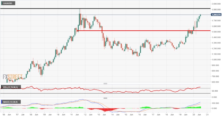 另一方面,黄金的月线图体现出了上涨的趋势。这也为最近的阻力突破提供了支撑,指标似乎也没有放缓的迹象。值得注意的是,在日线图中的任何波动或下跌都不会在月线图中很好地显现出来。