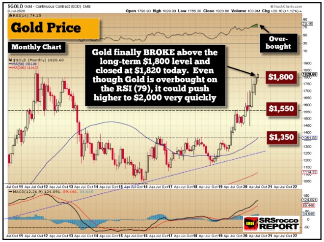 自2019年年中以来,智通财经APP一直在关注黄金价格的最新消息。一旦金价突破1350美元的长期水平,它就会迅速上升到下一个水平,1550美元……而金价正是这样做的。金价一旦突破每盎司1550美元的关口,就在接下来的三个月里飙升至每盎司1800美元。有趣的是,黄金在接下来没有阻力位。这意味着价格可能会迅速升至2000美元。