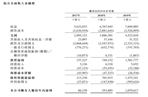 全矩阵产品及全渠道产品布局,使得蓝月亮业绩实现快速增长。招股书显示,2017年至2019年,蓝月亮的营收从56.32亿港元增长到70.50亿港元,净利润则从8616万港元上涨至10.80亿港元,净利润年复合年增长率达254%。