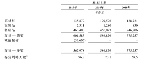 此外,蓝月亮在存货以及周转方面的效率一直在逐步提升。2017年至2019年,蓝月亮的存货总额分别为6.02亿港元、5.87亿港元和3.76亿港元;存货周转天数分别为96.8天、73.1天以及69.5天。