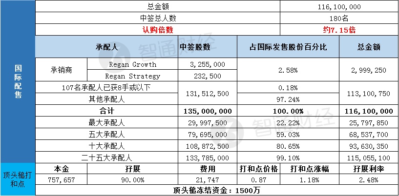国际配售申购人数未披露,认购倍数约7.15倍。