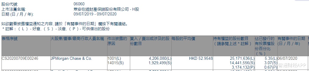 智通财经APP获悉,联交所最新资料显示,7月6日,小摩增持众安在线(06060)420.61万股,每股作价52.9548港元,总金额约为2.23亿港元。增持后最新持股数目约为2517.16万股,最新持股比例为5.35%。