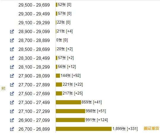 智通财经APP获悉,截至7月9日,恒指最新的牛熊街货比例58:42。摩根恒指牛熊证街货分布图中的数据显示,熊证街货重货区在26700-26899区间,该区间最新熊证数量为1899张,较上一交易日增加331张,最多新增也在该区间。牛证街货重货区在24800-24999区间,该区间最新牛证数量为1878张,较上一交易日减少73张,最多新增区间也在24400-24599区间,该区间最新牛证数量为657张,较上一交易日增加118张。
