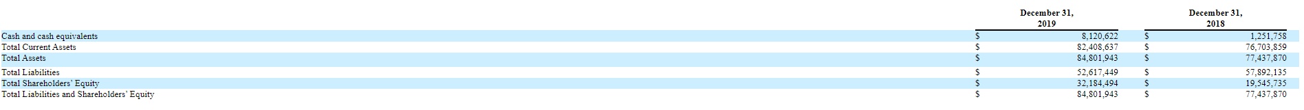 截止2019年12月31日,公司拥有现金及等价物812.06万美元。公司总资产8480.19万美元,总负债5261.74万美元。