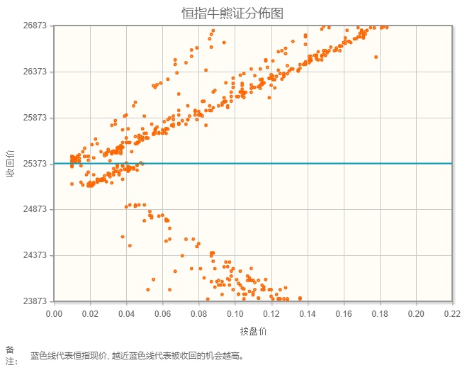 从恒生指数牛熊街货分布情况看,25727点位置,牛熊皆偏离500点位置稀疏,说明创设券商也犹豫后期行情波动。