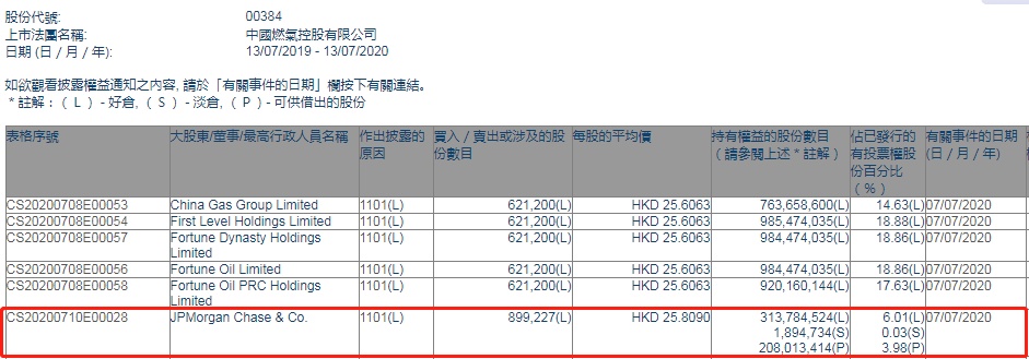 智通财经APP获悉,联交所最新资料显示,7月7日,小摩增持中国燃气(00384)89.9227万股,每股作价25.8090港元,总金额约为2320.81万港元。增持后最新持股数目约为3.14亿股,最新持股比例为6.01%。
