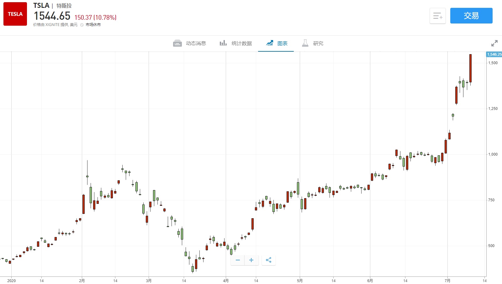 智通财经APP获悉,7月13日(周一)美股盘前,截至16:06,特斯拉(TSLA.US)涨3.08%,报1592美元。