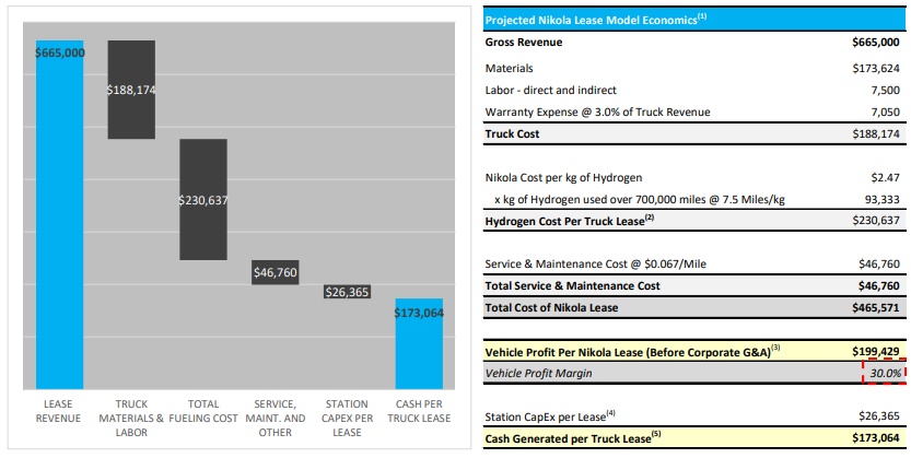 Nikola计划在7年70万英里的租赁期内,向客户收取每英里0.95美元的固定费率。每英里的固定成本给了卡车运营商一致的价格,不会像柴油那样全年随燃料成本波动。但缺点是,对车队运营商而言,不管他们是每周行驶几千英里,还是把车停在院子里,他们付出的代价都是一样的。