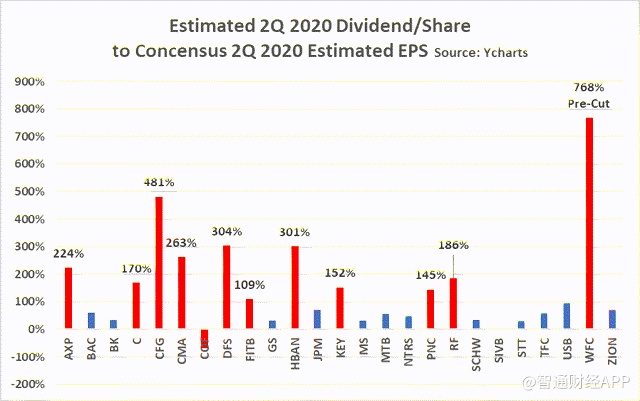 富国银行此前曾宣布将削减股息,当前其股息为51美分。第一资本信贷(COF.US)6月29日的新闻稿则对其派息计划只字未提,该公司尚未公布三季度的派息计划。